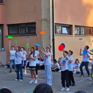 Grazie alle sapienti e pazienti indicazioni dell’esperto di Franco Piloni della Compagnia “ il filo Teatro” di Lecco, i ragazzi e le ragazze delle classi prime a tempo prolungato, infatti, hanno realizzato sketch esilaranti e numeri di grande abilità, con le palline, i piatti e i foulard.