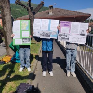 Gli alunni hanno raccolto informazioni su questi personaggi e realizzato dei cartelloni con scritte ed immagini significative, decidendo anche di omaggiare i partecipanti con dei segnalibri. Hanno trovato interessante questo lavoro di ricerca perché si è occupato di toponomastica, ma li ha fatti riflettere su un aspetto particolare: in tutti i paesi ci sono vie dedicate a personaggi famosi, via Dante, via Garibaldi… che tutti conoscono, mentre ci sono personaggi di storia locale che molti ignorano.